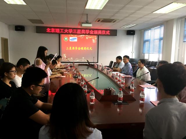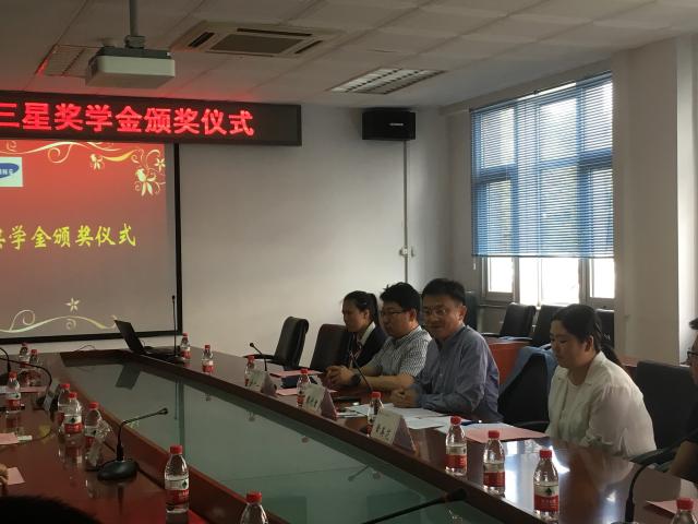 为表彰2015-2016学年及2016-2017学年三星奖学金获奖学生,北京理工大学学生事务中心与三星电子中国研究院于6月5日下午在研究生楼111会议室举办三星奖学金颁奖仪式。三星电子中国研究院张代君院长及三星电子中国研究院人事支援部金千一总监、北京理工大学学生事务中心郝洪涛主任、国际交流合作处邢清清副处长、校基金会王群超部长及获奖学生出席了颁奖仪式,仪式由学生事务中心陆宝萍副主任主持。